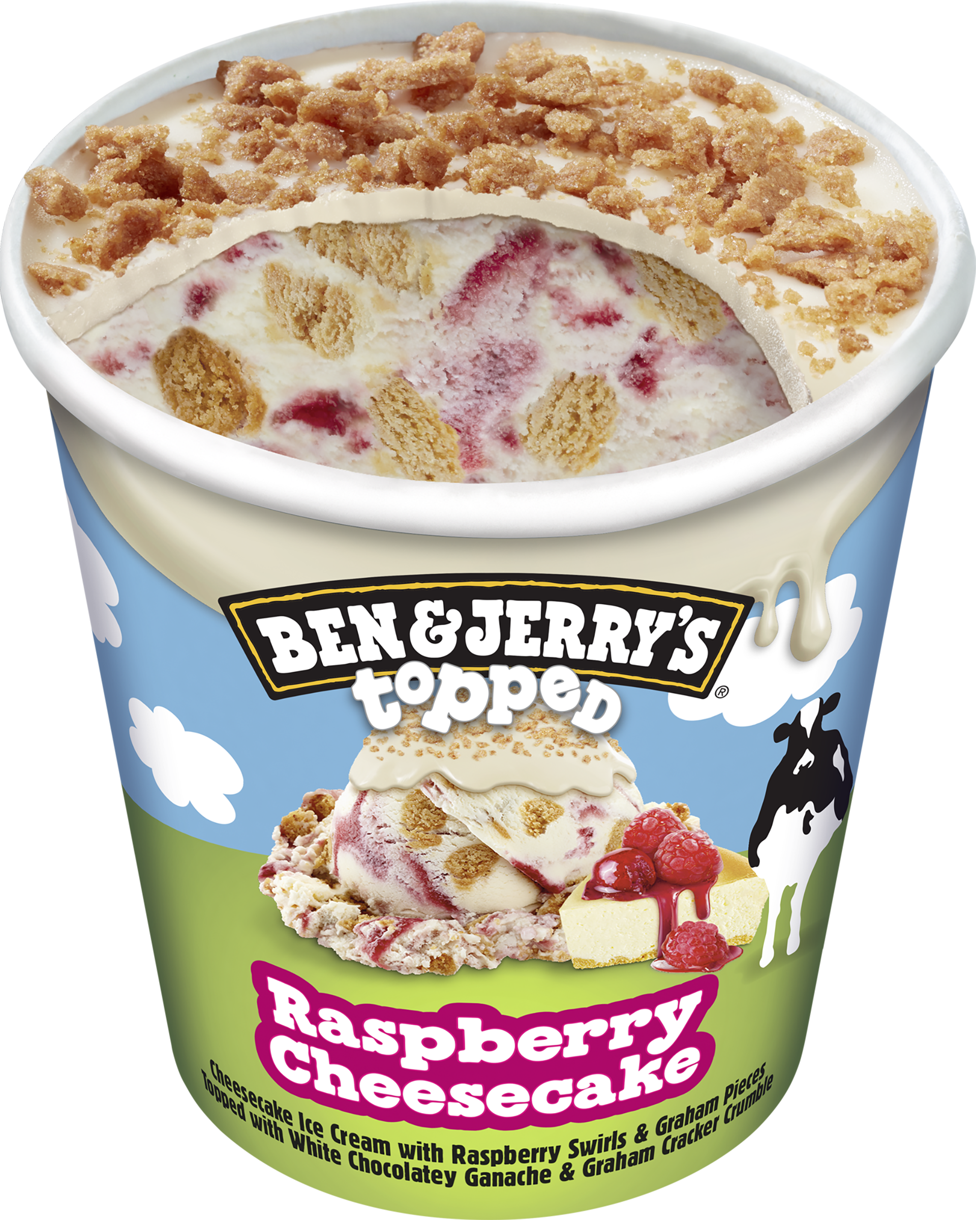 CREAM, SKIM MILK, SUGAR, WATER, LIQUID SUGAR (SUGAR, WATER), SOYBEAN OIL, WHOLE WHEAT FLOUR, WHEAT FLOUR, RASPBERRY PUREE, MILK, EGG YOLKS, COCONUT OIL, MOLASSES, SOY LECITHIN, NATURAL FLAVOR, SALT, MILK FAT, HONEY, BAKING SODA, GUAR GUM, VANILLA EXTRACT, PECTIN, LACTIC ACID, FRUIT JUICE (FOR COLOR), CITRIC ACID, CARRAGEENAN, LOCUST BEAN GUM, CHEESE CULTURES.