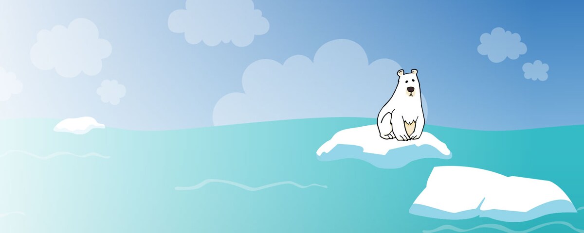 Illustration of a polar bear sitting on a glacier